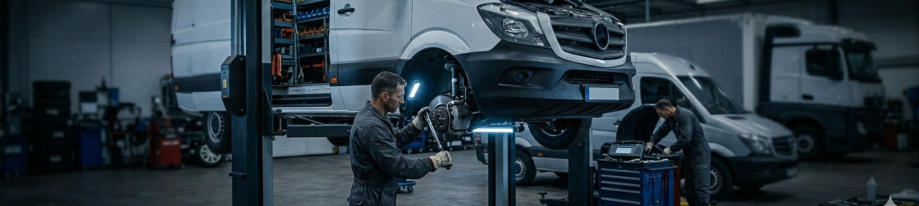 Serwis Eksploatacyjny (Bieżący): Ekspresowa wymiana olejów, filtrów oraz serwis układów hamulcowych (klocki, tarcze). Dbamy o to, by każde auto w Twojej flocie było zawsze gotowe do drogi.